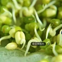 绿豆经水浸罨后,发出的嫩芽。用鲜品。