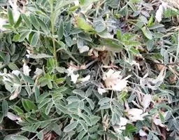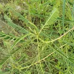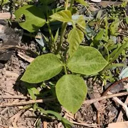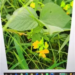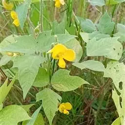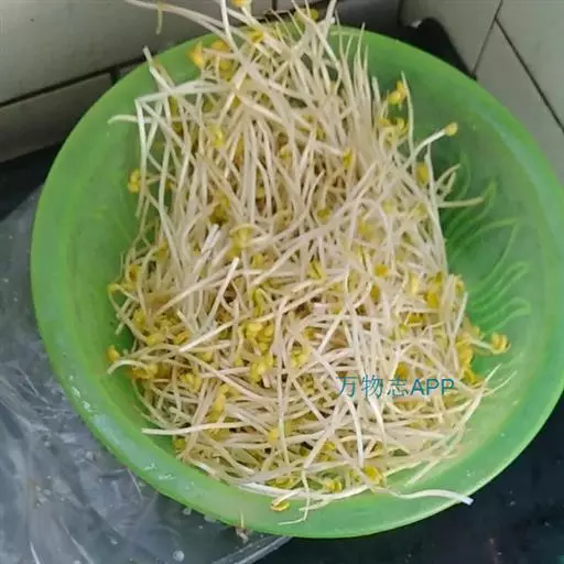 一年生直立或顶端微缠绕草本。高约60cm,被短褐色硬毛。三出复叶,互生;叶柄长9-12cm;小叶3,叶片阔卵形至菱状卵形,侧生小叶偏斜,长6-10cm,宽2.5-7.5cm,先端渐尖,基部圆形、楔形或截形,两面疏被长硬毛;托叶阔卵形,小托叶线形。总状花序腋生,总花梗短于叶柄或近等长;苞片卵形或卵状长椭圆形,有长硬毛;花绿黄色;萼斜钟状,萼齿4,最下面1齿最长,近无毛;旗瓣肾形,翼瓣有渐窄的爪,龙骨瓣的爪截形,其中一片龙骨瓣有角;雄蕊10,二体;子房无柄,密被长硬毛...... 绿豆芽