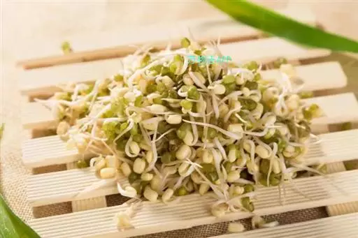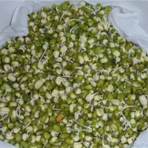 绿豆在发芽的过程中,会发生多种有益于人体的变化:部分蛋白质会分解成易被人体吸收的游离氨基酸;棉子糖、毛类花糖等产生气体的糖类完全消失,使得进食绿豆芽后不会像过量食用绿豆那样引起腹部胀痛。而且,绿豆发芽后,释放出更多的磷、锌等矿物质,维生素类物质的含量也会大大增加,其中维生素B2增加了2-4倍,胡萝卜素增加了2-3倍,维生素C增加了6%,叶酸和维生素B6也有所增加。