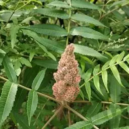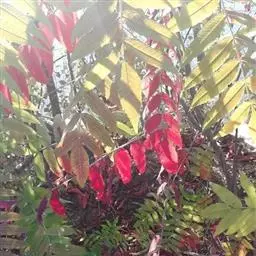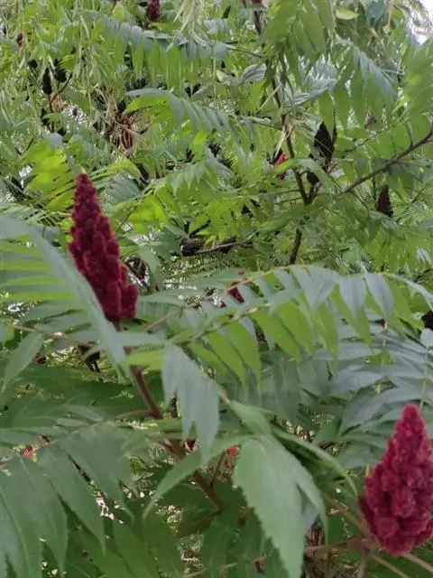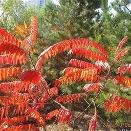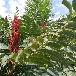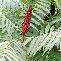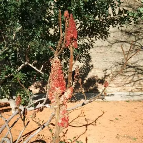火炬树是漆树科盐麸木属落叶灌木或小乔木;株高,树形不整齐;小枝粗壮,红褐色,密生绒毛;叶轴无翅,…