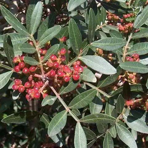 清香木,漆树科黄连木属的灌木或小乔木植物,树皮灰色,小枝具棕色皮孔,…