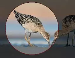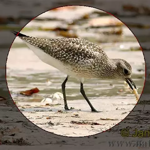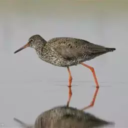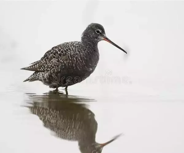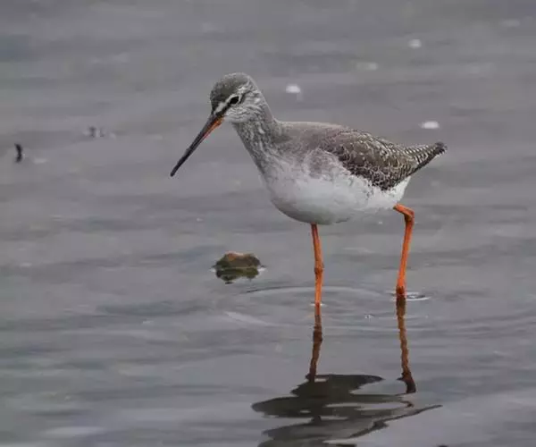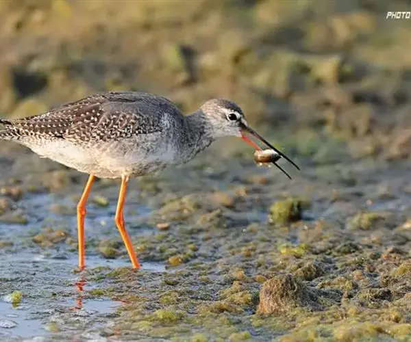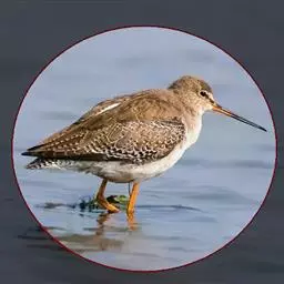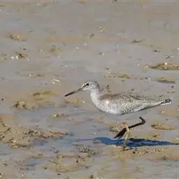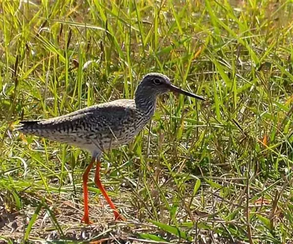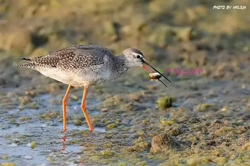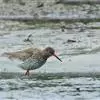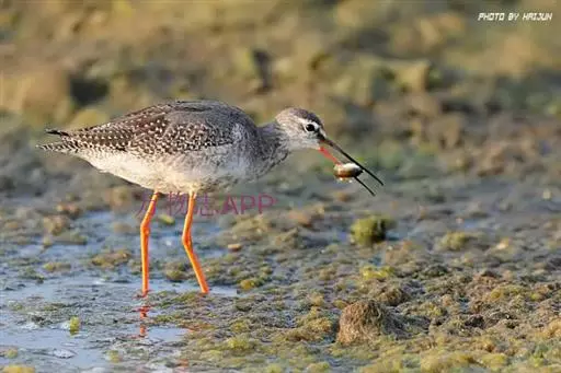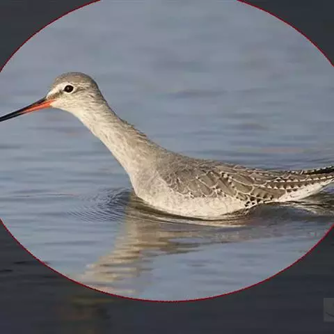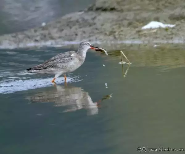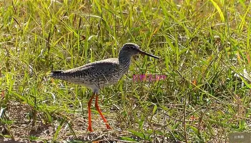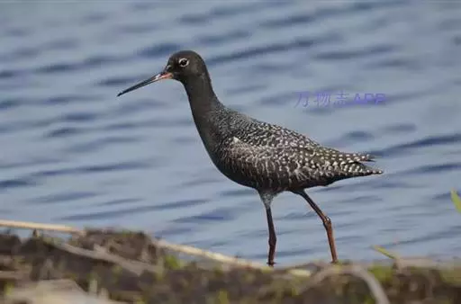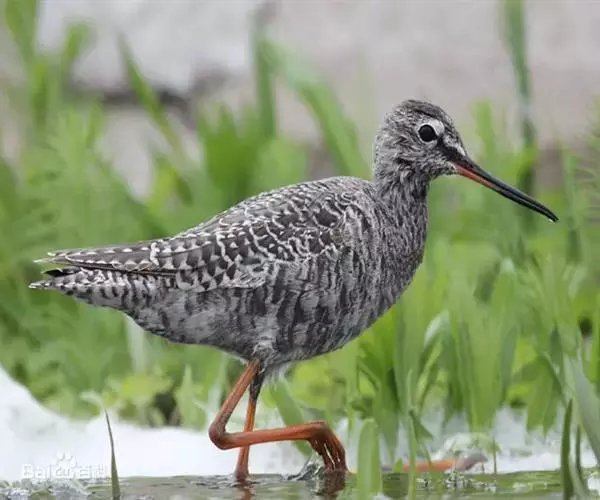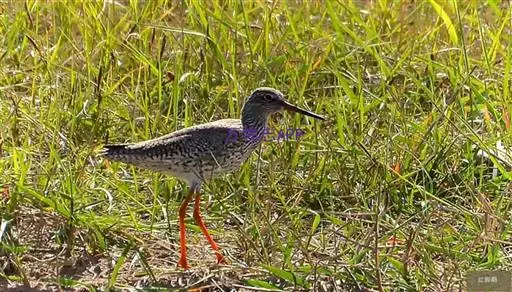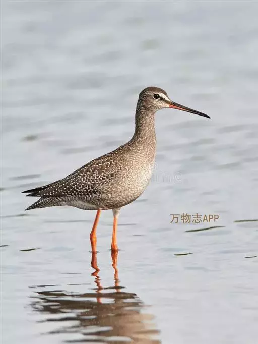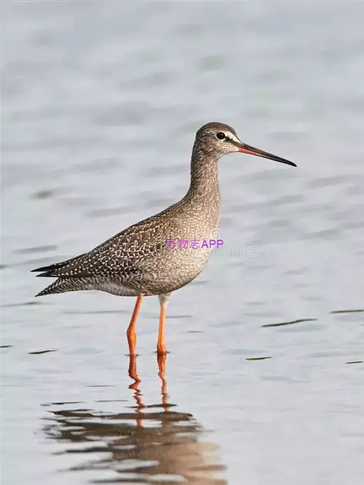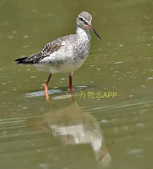 红脚鹬:体长28厘米,上体褐灰,下体白色,胸具褐色纵纹。飞行时腰部白色明显,次级飞羽具明显白色外缘。…