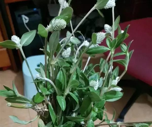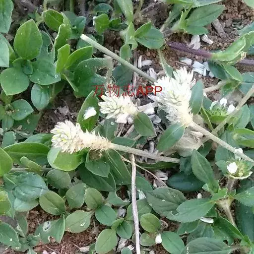 银花苋 Gomphrenacelosioides Mart. 本种和千日红相近,区别为,茎有贴生白色长柔毛,花序银白色,花被片花期后变硬。花果期2—5月。