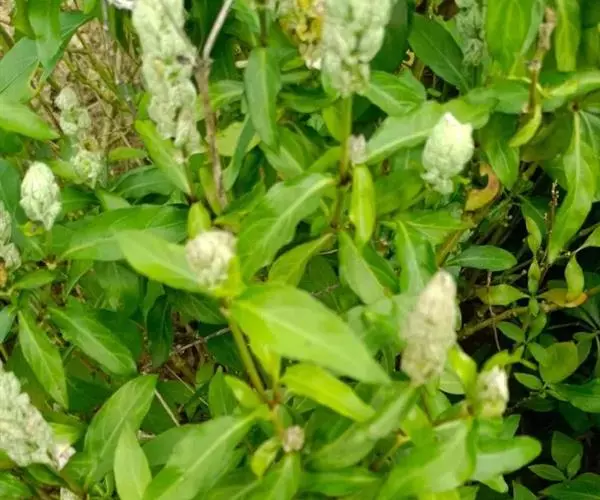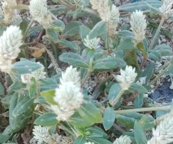 银花苋丛生植株 原产美洲热带,现分布世界各热带地区。中国广东、海南岛、西沙群岛、台湾亦有。生在路旁草地。