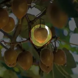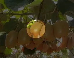黄金果猕猴桃 黄金果是猕猴桃品种之一,原产地新西兰,因成熟后果肉为黄色而得名。黄金果为二倍体,果实为长卵圆形,果喙端尖、具喙,果实中等大小,单果重80~140g,若使用生物促进剂BenifitPZ,大果比例增加。软熟果肉黄色至金黄色,味甜具芳香,肉质细嫩,风味浓郁,可溶性固形物含量15%~19%,干物质含量17%~20%,果实硬度1.2~1.4kg/cm。