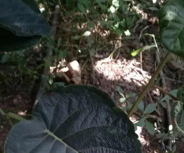 叶为纸质,无托叶,倒阔卵形至倒卵形或阔卵形至近圆形,长6-17厘米,宽7-15厘米,顶端截平形并中间凹入或具突尖、急尖至短渐尖,基部钝圆形、截平形至浅心形,边缘具脉出的直伸的睫状小齿,腹面深绿色,无毛或中脉和侧脉上有少量软毛或散被短糙毛,背面苍绿色,密被灰白色或淡褐色星状绒毛,侧脉5-8对,常在中部以上分歧成叉状,横脉比较发达,易见,网状小脉不易见;叶柄长3-6(-10)厘米,被灰白色茸毛或黄褐色长硬毛或铁锈色硬毛状刺毛。