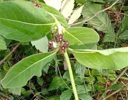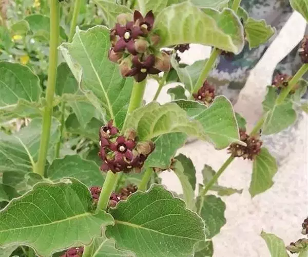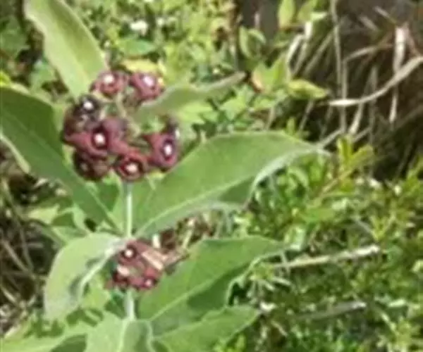 直立白薇:又名:三百根、牛角胆草、苦胆草、羊奶子,多年生草本。植物体具白色乳汁。根茎短,簇生多数细长的条状根。茎直立,叶对生;具短柄;叶脉在下面稍隆起。伞形花序腋生,小花梗短,花黑紫色。