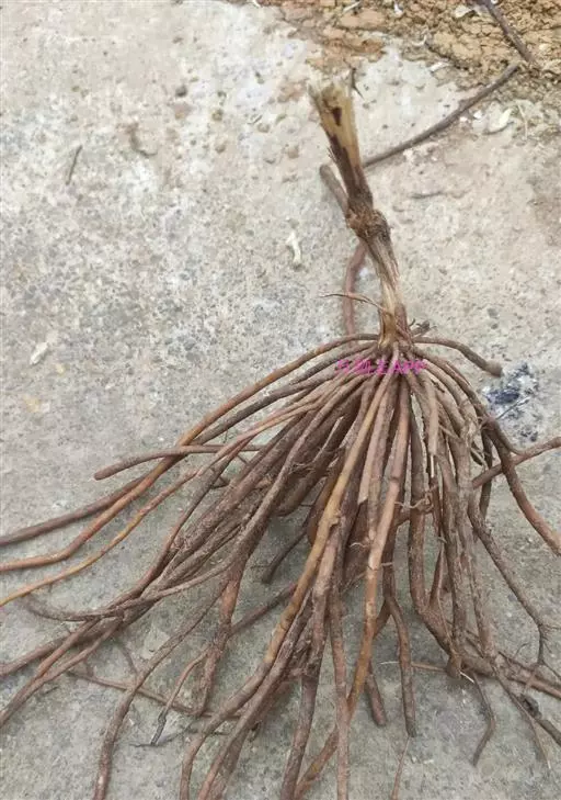 干燥根茎类圆柱形,略横向弯曲,呈结节状,长约1.5-3-5cm,直径约0.5-1-2cm;表面灰棕色至棕色;质坚脆,易折断,断面略平坦,类白色。根呈细长圆柱状,有时弯曲或卷曲,丛生于根茎上,形如马尾,长约10-15-20cm,直径约1-2.5mm,表面黄棕色,有细纵皱。质脆,易折断,折断时有粉飞出。断面略平坦,类白色至浅黄棕色,皮部发达,木部很小,仅占直径的1/3。气微弱,味苦。以根色黄棕、粗壮、条匀、断面白色实心者为佳。