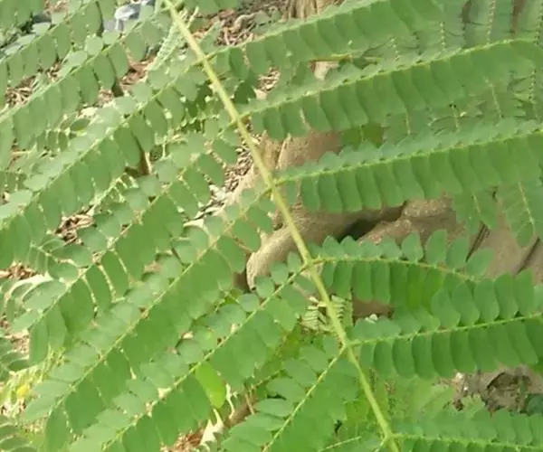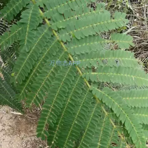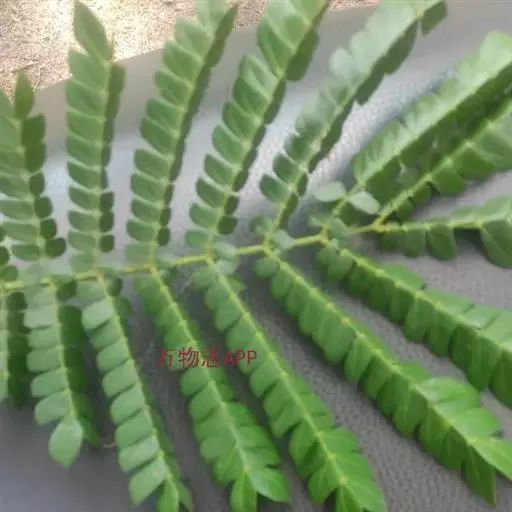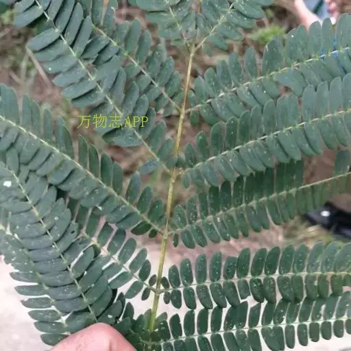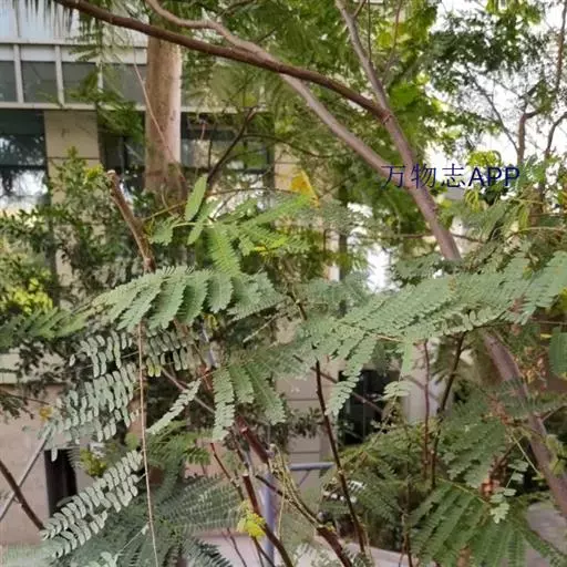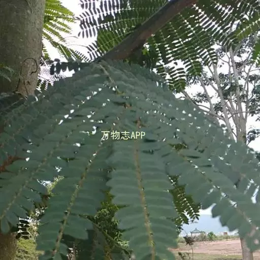 常绿大乔木,树干通直,高可达45m;嫩枝圆柱状或微有棱,被柔毛。托叶锥形,早落。羽片6-20对,上部的通常对生,下部的有时互生;总叶柄基部及叶轴中部以上羽片着生处有腺体;小叶6-26对,无柄,菱状长圆形,长1-1.5cm,宽3-6mm,先端急尖,基部圆钝或近截形;中脉偏于上边缘。