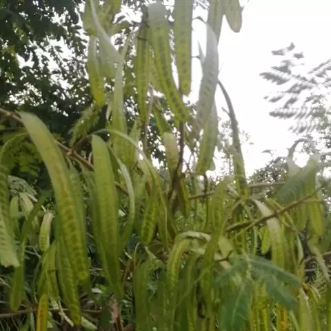 荚果带形,长10-13cm,宽1.3-2.3cm,熟时开裂;种子多颗,长约7mm,宽约3mm。