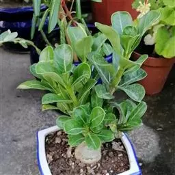 五彩络石为常绿蔓性藤本植物。匍匐生长,茎具白色乳汁,叶对生,革质,卵形,长3厘米,宽2厘米。喜阳耐…
