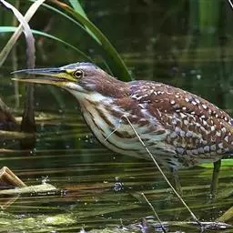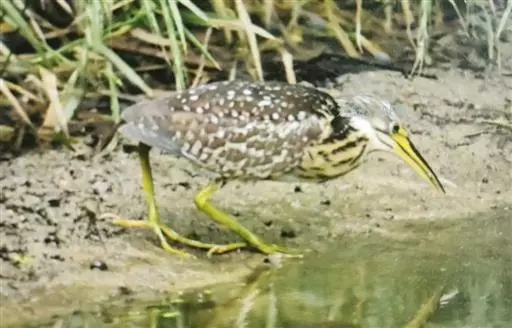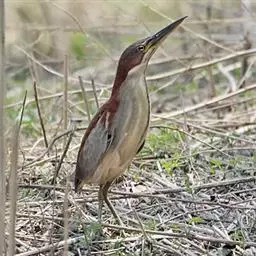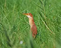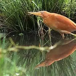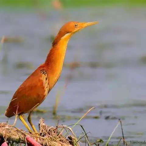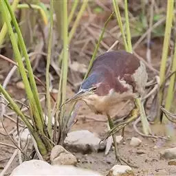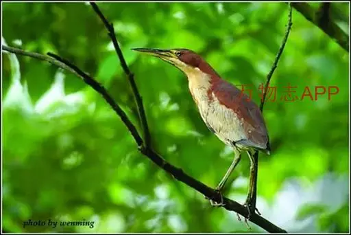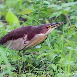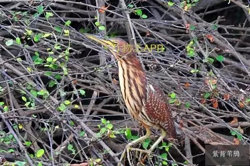 紫背苇鳽(学名:Ixobrychus eurhythmus)为涉禽,体长约33厘米。头顶黑色,后头至尾上覆羽暗栗褐色;翅上覆羽橄榄黄色;下体浅棕黄色。多生活于水库和山脚边的稻田、芦苇丛、滩涂及沼泽草地,在西藏见于海拔2300米的农田,营巢于草丛或苇丛中。食物种类为鱼、虾,育雏中、后期食物种类除鱼、虾之外,还有较多的蛙、蝌蚪、泥鳅及其他水生昆虫。分布于亚洲东部,包括马来西亚、巽他群岛、菲律宾、台湾及中国大陆的东北、华北、浙江、长江流域、福建、四川、西藏、云南、华南及海南等地。
