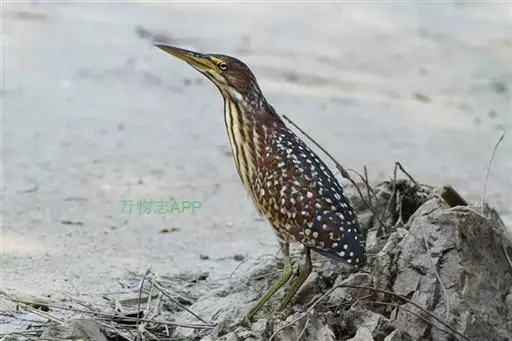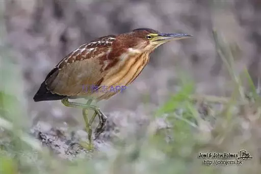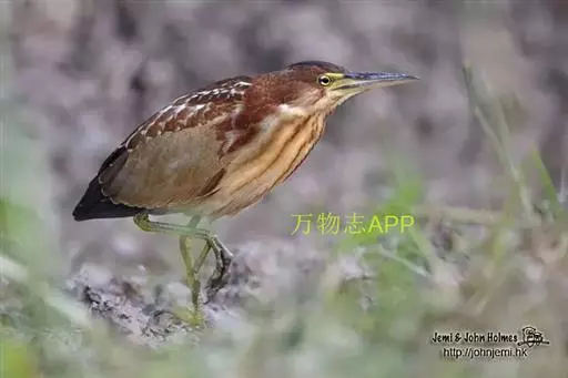 虹膜黄色,嘴、眼先和嘴基也为黄色,嘴峰黑褐色,胫下部、跗蹠和趾黄绿色。