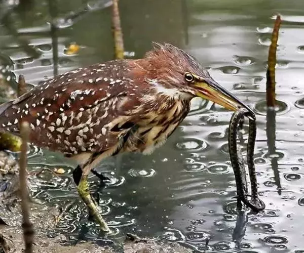 主要以小鱼、虾、蛙、昆虫等动物性食物为食。通常黄昏和清晨在湖泊、河流和水塘边的芦苇丛及沼泽草地上觅食。