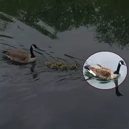 黑雁是雁形目鸭科黑雁属鸟类,又称黑鹅。头、颈、胸、嘴及脚黑褐色;虹膜褐色;背及两翼灰褐色;尾下覆羽白色;胸侧及胁部多近白色纹;颈部两侧各具一个特征性白色横纹,在颈前后断开,未能联成颈环。幼鸟颈部无白斑,而翅上多白色横纹。黑雁繁殖于北美洲、西伯利亚极地的苔原冻土带,越冬于南方沿海的草地及河口。在中国安徽也能见其身影。主要栖息在海湾、海港及河口等地,在冬季里大多出现在有耐碱植物生长的湖泊和水库周围,也出现在周围地势低洼的咸水湖和沿海地区,偶尔还出现在农田地里。性活跃,喜集群,常成群活动和栖息。主要以植物性食物为食。繁殖期在6-8月,雌鸟孵卵,雄鸟通常在距巢100米以内范围内守候警诫。雌鸟孵卵时常将头和颈朝地面平伸出去以降低高度。孵化期为22-28天。黑雁被列入中国林业局2000年8月1日发布的《国家保护的有益的或者有重要经济、科学研究价值的陆生野生动物名