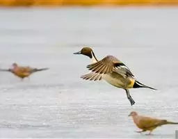 豆雁,雁形目鸭科。成鸟头、颈、背灰褐色,带淡黄色羽缘;尾上覆羽白色,尾羽黑褐色带白端,…