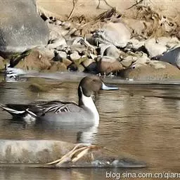 针尾鸭,是雁形目鸭科鸭属动物。体长约75厘米的大型戏水鸭,雄鸟头暗褐色,颈侧有白色纹路,…