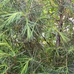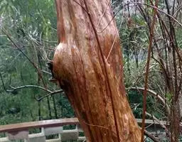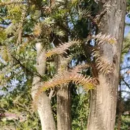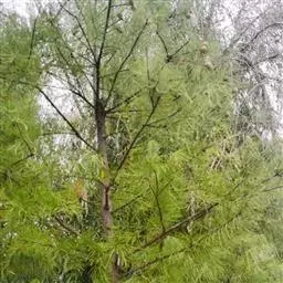 水松 乔木,高8-10米,稀高达25米,生于湿生环境者,树干基部膨大成柱槽状,并且有伸出土面或水面的吸收根,柱槽高达70余厘米,干基直径达60-120,厘米,树干有扭纹;树皮褐色或灰白色而带褐色,纵裂成不规则的长条片;枝条稀疏,大枝近平展,上部枝条斜伸;短枝从二年生枝的顶芽或多年生枝的腋芽伸出,长8-18厘米,冬季脱落;主枝则从多年生及二年生的顶芽伸出,冬季不脱落。