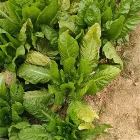 症状:洋蓟植株早晚叶子正常, 中午时发生萎蔫。药剂防治:应用50%多菌灵可湿性粉剂600倍液多菌灵或20%农用链霉素可湿性粉剂150 mg/kg液灌根, 连续3次, 若已经发生, 应及时将病株清除出田块, 在病株周围地块用生石灰消毒处理。