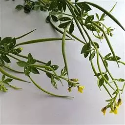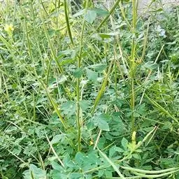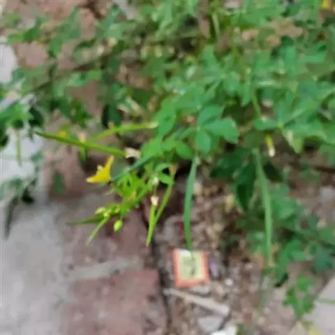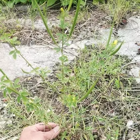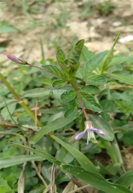 一年生草本。茎直立、开展或平卧,分枝疏散,高达90厘米,无刺,茎、叶柄及叶背脉上疏被无腺疏长柔毛,有时近无毛。叶具3小叶,叶柄长2-20毫米(茎下部的叶未见);小叶椭圆状披针形,有时近斜方状椭圆形,顶端急尖或渐尖、钝形或圆形,基部渐狭或楔形,几无小叶柄,边缘有具纤毛的细齿,中央小叶最大,长1-2.5厘米宽5-12毫米,侧生小叶较小,两侧不对称。花单生于茎上部叶具短柄叶片较小的叶腋内,常2-3花连接着生在2-3节上形成开展有叶而间断的花序;花梗纤细,长1.2-2厘米,果时长约3厘米;萼片4,绿色,分离,狭披针形,顶端尾状渐尖,长约4毫米,背部被短柔毛,边缘有纤毛;花瓣4,新鲜标本上2个中央花瓣中部有黄色横带, 2个侧生花瓣颜色一样,顶端急尖或钝形,有小凸尖头,基部渐狭延成短爪,长约6毫米,宽约2毫米,近倒披针状椭圆形,全缘,两面无毛;花盘不明显,花托长约1毫米,雄蕊6,花丝长5-7毫米,花药长1.5-2毫米;雌蕊柄长1.5-2毫米,果时长4-6毫米;子房线柱形,长5-13毫米,无毛,有些花中子房不育,长仅2-3毫米;花柱短而粗,柱头头状。果线柱形,表面平坦或微呈念珠状,两端变狭,顶端有喙,长3.5-6厘米,中部直径3.5-4.5毫米;果瓣质薄,有纵向近平行脉,常自两侧开裂。种子近圆形,直径1.5-1.8毫米,背部有20-30条横向脊状皱纹,皱纹上有细乳状突起,爪开张,彼此不相联,爪的腹面边缘有一条白色假种皮带。花果期6-9月。 (图片源 )