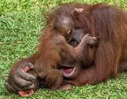 猩猩也叫人猿,灵长目人科 的一属,与猴子最大不同的地方就是没有尾巴,能用手或脚拿东西。马来语和印…