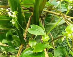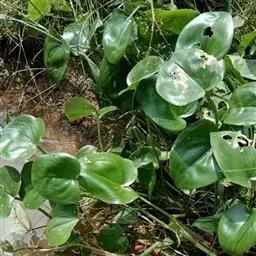 多年生挺水或湿生草本植物,叶柄绿色,圆筒形,叶片较大,长可达25厘米,宽可达15厘米,深绿色,叶形多变。大部分为倒卵状披针形,长约10-20厘米。上方两花瓣各有两个黄绿色斑点,花葶直立,通常高出叶面。 根茎为须状不定根,长15-30厘米,具多数根毛。地下茎粗壮,黄褐色,有芽眼,地茎叶丛生,株高80-150厘米。叶柄绿色,圆筒形,横切断面具膜质物。叶片光滑,呈橄榄色,倒卵状披针形。叶基生广心形,端部渐尖。