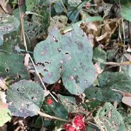 太平莓(图1) 常绿矮小灌木,单叶,革质,宽卵形至长卵形,长8-16厘米,宽5-13厘米,顶端渐尖,基部心形,上面无毛,下面密被灰色绒毛,基部具掌状5出脉,侧脉2-3对,下面叶脉突起,棕褐色,边缘不明显浅裂,有不整齐而具突尖头的锐锯齿;叶柄长4-8厘米,幼时具柔毛,老时脱落,疏生小皮刺;托叶大,棕色,叶状,长圆形,长达2.5厘米,具柔毛,近顶端较宽并缺刻状条裂,裂片披针形。