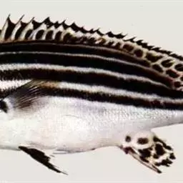 黑鲷是鲈形目鲷科棘鲷属的一种硬骨鱼,俗称海鲋、青鳞加吉、青郎、乌颊、牛屎鱲、乌翅、黑加吉、黑立、海鲫和铜盆鱼等。体呈长椭圆形,侧扁,头中大,吻钝尖。口小,上、下颌等长;体被中等大的弱栉鳞,体侧通常有5~7条黑色条纹。背鳍棘坚硬,臀鳍第二鳍棘尤甚;体背部为灰黑色,侧线起点处有黑斑点,体侧常有数条不明显的暗褐色横带,腹部银白。黑鲷分布于中国、日本和韩国等地的沿岸、港湾及河口,属内湾性鱼类,在中国,以黄海、渤海数量较多。黑鲷为浅海、底层鱼类,喜栖于沙、泥底或多岩礁的清水中,为广温、广盐性鱼类,对于环境适应能力较强。黑鲷为杂食性鱼类,在自然海区,以软体动物的蛤类、小鱼虾类为主食,有时也吃海藻,人工养殖可采用低值鱼虾贝类或配合饵料投喂。黑鲷具有很强的繁殖力,雌雄同体,雄性先熟,怀卵量达200万~300万粒以上。黑鲷是名贵海产鱼之一,全体药食兼用。具有健脾利水、补气活血的功效;用于脾虚水肿、小儿脾胃不