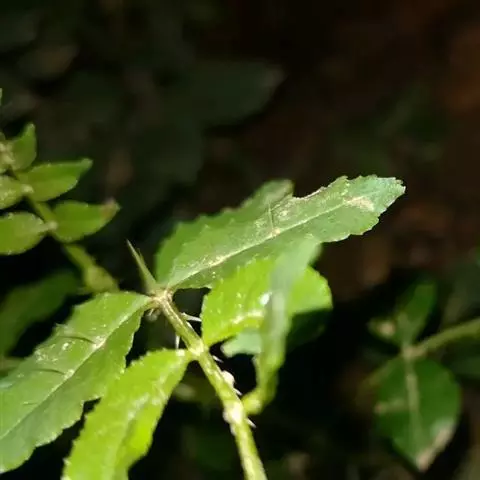 花椒簕是芸香科花椒属的藤状灌木植物。小枝细长披垂,枝干具短钩刺;奇数羽状复叶,小叶草质,…