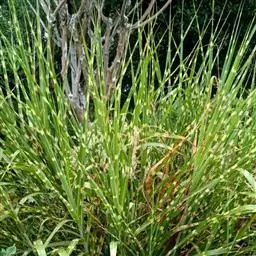 斑叶芒是禾本科、芒属多年生草本植物。丛生状,茎高可达1.7米。叶片有黄色不规则斑纹,…