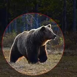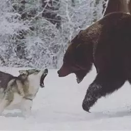棕熊(学名:Ursus arctos):亦称灰熊。是陆地上食肉目体形最大的哺乳动物之一,体长1.5-2.8米,肩高0.9-1.5米,雄性体量135-545千克,雌性体重80-250千克。头大而圆,体形健硕,肩背隆起。被毛粗密,冬季可达10厘米;颜色各异,如金色、棕色、黑色和棕黑等。前臂十分有力,前爪的爪尖最长能到15厘米。由于爪尖不能象猫科动物那样收回到爪鞘里,这些爪尖相对比较粗钝。前臂在挥击的时候力量强大,“粗钝”的爪子可以造成极大破坏。