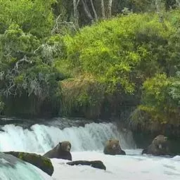 季节的变化会带来食物种类和资源的变化,例如鲑鱼产卵和浆果高产的丰收时节,这时会暂时步行几百公里,迁移到食物最丰富的地方。此时棕熊们大群地聚集在一起,级别最高的是那些体型庞大的大公熊,它们会站居最有利的地形,而级别最低,威胁性最小的则是那些刚刚独立不久的青年男女。带着孩子的单身母熊虽位列第二,但却是相当具有危险性的,出于对幼子的爱护,这些母熊们十分好斗。