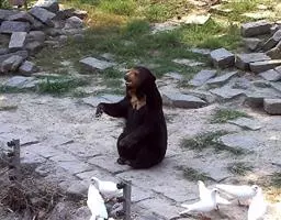 马来熊,是食肉目熊科马来熊属哺乳动物。体胖颈短,眼睛和耳朵小;头部短圆;全身乌黑光滑;鼻唇周为棕黄色,…