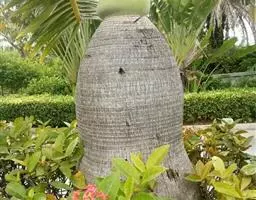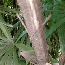 丛生灌木,高2-3m,茎干直立圆柱形,有节,直径1.5-3cm,茎纤细如手指,不分枝,有叶节,上部被叶鞘,但分解成稍松散的马尾状淡黑色粗糙而硬的网状纤维。