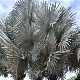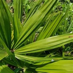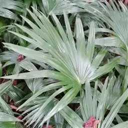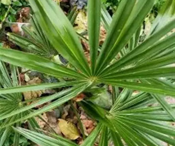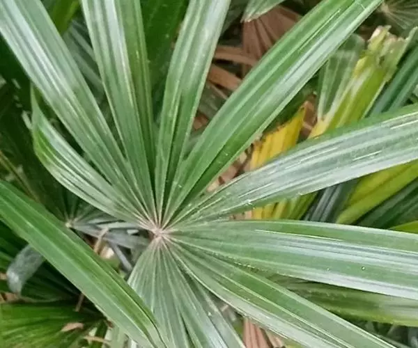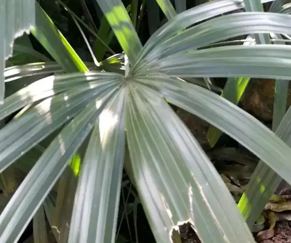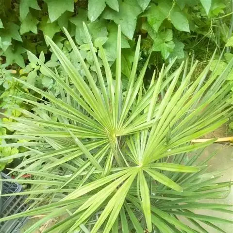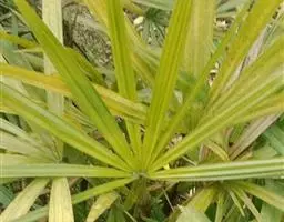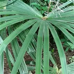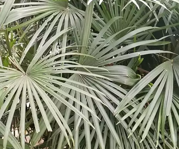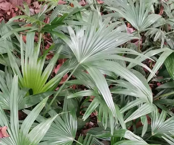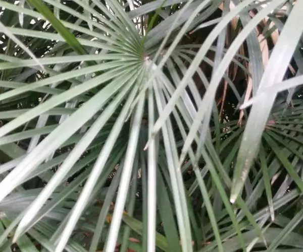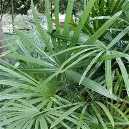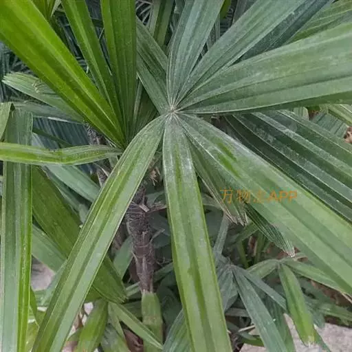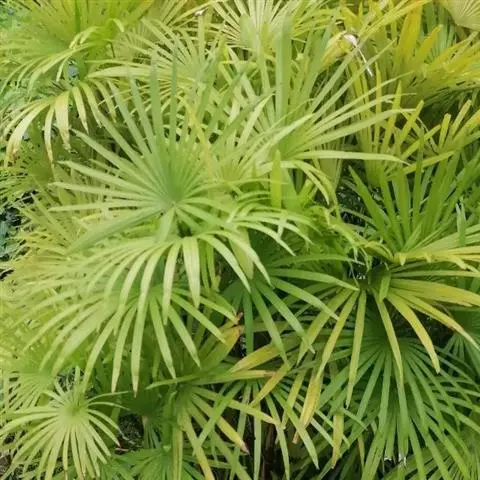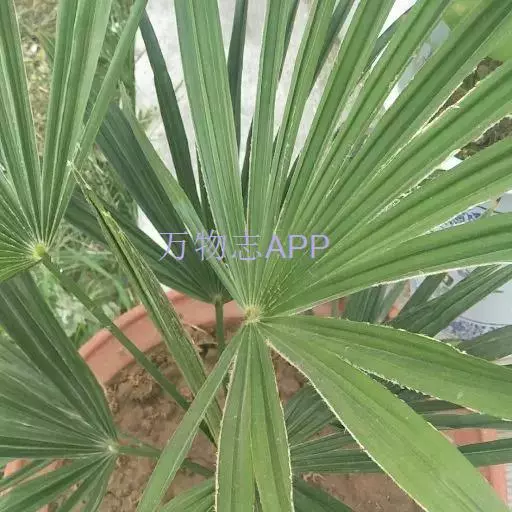 常绿丛生灌木。茎丛生,株高1-3米,被叶鞘细纤维所包裹。叶扇形,掌状深裂,裂片25-31枚,狭线形,劲直伸展,边缘有小齿,两侧及中间一片最宽,叶柄边缘稍锐利,有淡黄色密绒毛。果椭圆形,花期3-4月。