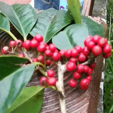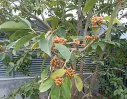 雌花:花序具1-2回分枝,具花3-7朵,总花梗长约3-10毫米,扁,二级轴发育不好;花梗长6-10毫米;花萼和花瓣同雄花,退化雄蕊长约为花瓣的1/2,败育花药心形;子房卵球形,柱头具不明显的4-5裂,厚盘形。果长球形,成熟时红色,长10-12毫米,直径6-8毫米;分核4-5,狭披针形,长9-11毫米,宽约2.5毫米,背面平滑,凹形,断面呈三棱形,内果皮厚革质。花期4-6月,果期7-12月。