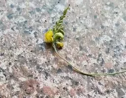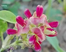 总状花序顶生或侧生,长15-20厘米,疏散多花,下部腋生的花序较短;苞片钻形,长约3毫米,脱落;花长约2厘米;花梗长约1厘米;花萼阔钟状,长宽各约5毫米,密被茸毛,萼齿近等长,三角形,圆头,长约1毫米;花冠色、淡黄色或淡红色,旗瓣外面密被白色绢毛,翼瓣和龙骨瓣无毛;子房密被绒毛,花柱扁平,直角上弯,内侧有稀疏柔毛,柱头点状,胚珠多数。荚果直,线形,密被褐色长短混杂细绒毛,长8-10厘米,宽7.5-8.5毫米,顶端截尖,喙直,长约1厘米,有种子10-15粒;种子榄绿色,具花斑,平滑,椭圆形,长约5毫米,宽约3.5毫米,厚约2毫米,种脐稍偏,种阜环形,明显。花期10-11月,果期12月。