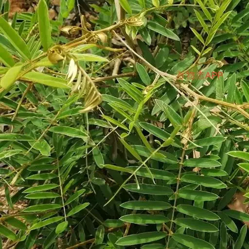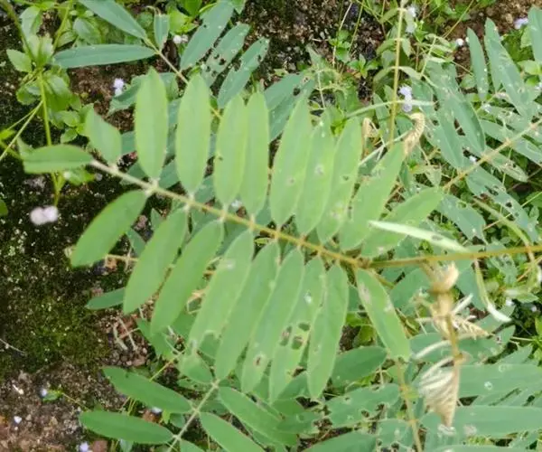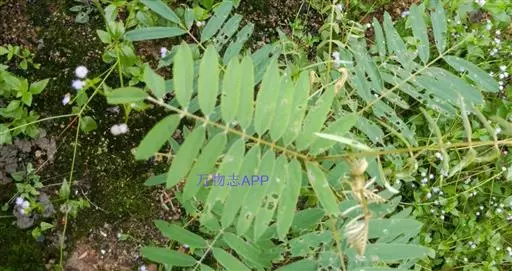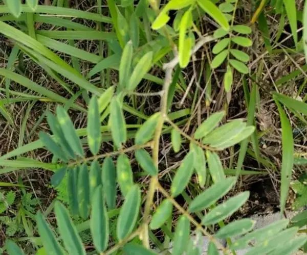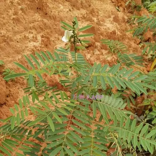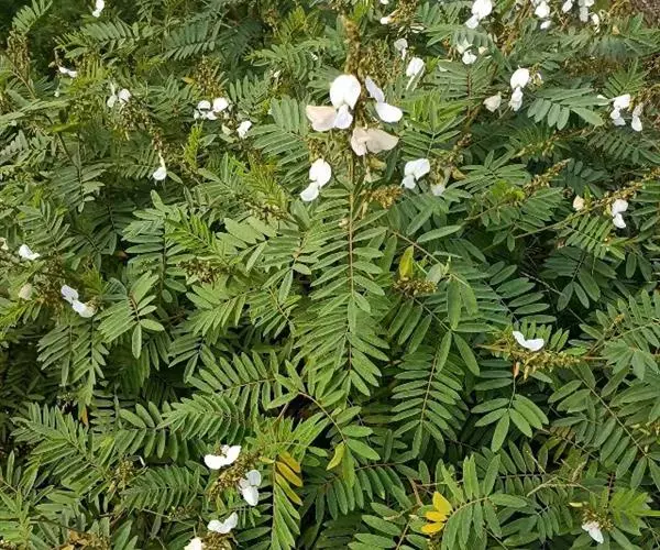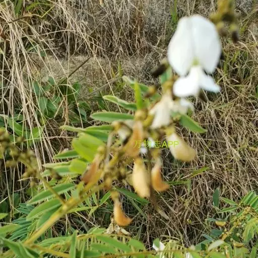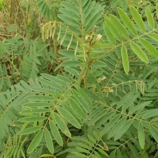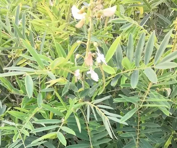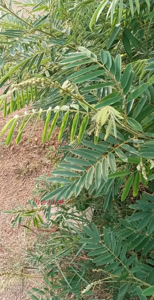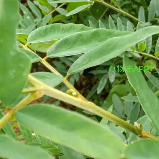 灌木状草本,高1-3.5米。茎木质化,具纵棱,与叶轴同被灰白色茸毛,毛长约0.75-1毫米。羽状复叶长15-25厘米;叶柄长1-3厘米,叶轴上面有沟;托叶三角状钻形,刚毛状直立,长4-7毫米,被毛,宿存;小叶8-12对,长圆形,长3-6厘米,宽6-1.4厘米,先端具细凸尖,上面无毛,下面密被平伏绢毛,侧脉30-50对,纤细,稍隆起;小叶柄长3-4毫米,密被茸毛。