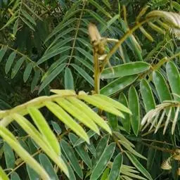 翌年2月前后荚果大量成熟,及时采收晾晒,除去杂物,用麻袋包装贮运。在同一树上种子成熟度不一致,荚壳翠绿色的成熟度低,种皮薄,播后5-7天可发芽出土;荚壳墨绿色的成熟度高,种皮较厚,播种后需10-15天才能发芽出土。最好是采收荚果分别装袋,才能做到播种发芽速度较一致。