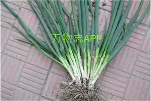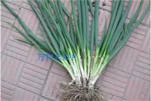 株高约20~30公分,叶绿色,圆筒形,中空,先端渐尖;开花为繖形花序,小花白绿色,聚生成团,鳞茎基部易连生,群生状,成熟时外被红色薄膜。