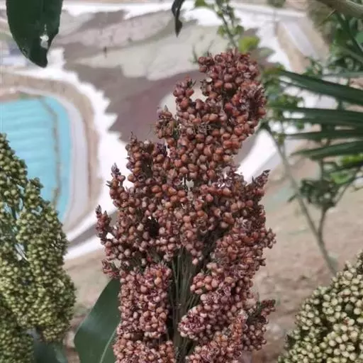 高粱(Sorghum bicolor (L.) Moench)禾本科一年生草本植物。秆较粗壮,直立,基部节上具支撑根。叶鞘无毛或稍有白粉;叶舌硬膜质,先端圆,边缘有纤毛。圆锥花序疏松,主轴裸露,总梗直立或微弯曲;雄蕊3枚,花药长约3毫米;子房倒卵形;花柱分离,柱头帚状。颖果两面平凸,淡红色至红棕色,熟时宽2.5-3毫米,顶端微外露。有柄小穗的柄长约2.5毫米,小穗线形至披针形,花果期6-9月。