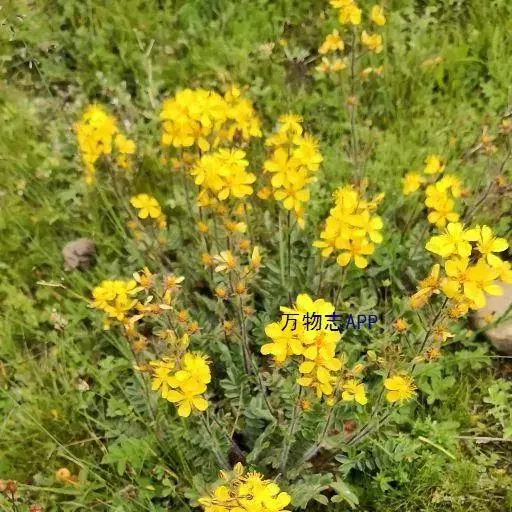 多年生草本,高18-32厘米;根茎木质,顶端有旧叶柄残痕;茎直立,圆柱形,带红褐色,不分枝,或在栽培时稍分枝,疏生白色长柔毛或绢状柔毛。基生叶为奇数羽状复叶,连叶柄长4.5-13厘米,叶柄长1-6厘米;小叶片13-21个,常为13个,对生稀互生,纸质,宽椭圆形或倒卵状矩圆形,长1-2.5厘米,宽5-10毫米,先端2-3浅裂,基部圆形,全缘,侧脉不显;托叶卵形,长约1厘米;茎生叶有少数小叶片或成单叶,3裂或有2-3齿。总状花序顶生,长5-20厘米,有12-15朵花;苞片倒披针形,3浅裂或深裂,上部者窄披针形,不裂,长8-20毫米;花梗直立,长1.5-4厘米;花直径约2厘米;副萼片披针形,长3-4毫米,其中2个较大,3个较小,连合成漏斗状,先端锐尖,有4-5齿,外面除白色长柔毛外还有腺毛;萼筒长2毫米,萼片披针形,长7-8毫米,先端锐尖;花瓣黄色,倒卵形,长10-12毫米,宽7-8毫米,先端圆形,基部成短爪;雄蕊花丝黄色,长6毫米,宿存;子房卵状矩圆形,花柱2,离生,丝状,伸出花外很长。瘦果近球形,直径3-4毫米,黄褐色,包在萼管内。花期7-8月,果期9-10月。 马蹄黄
