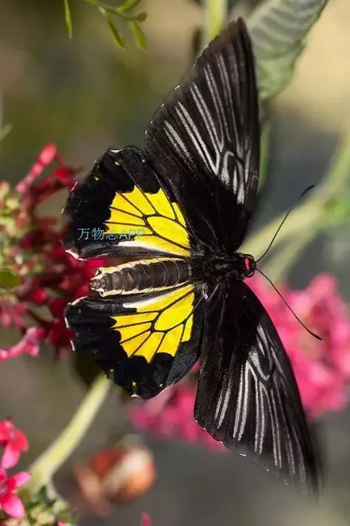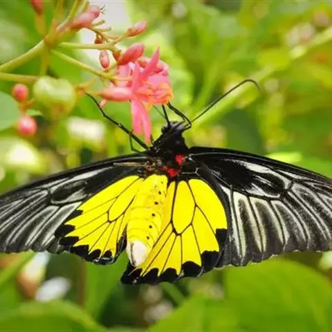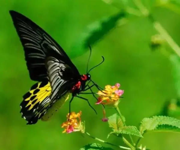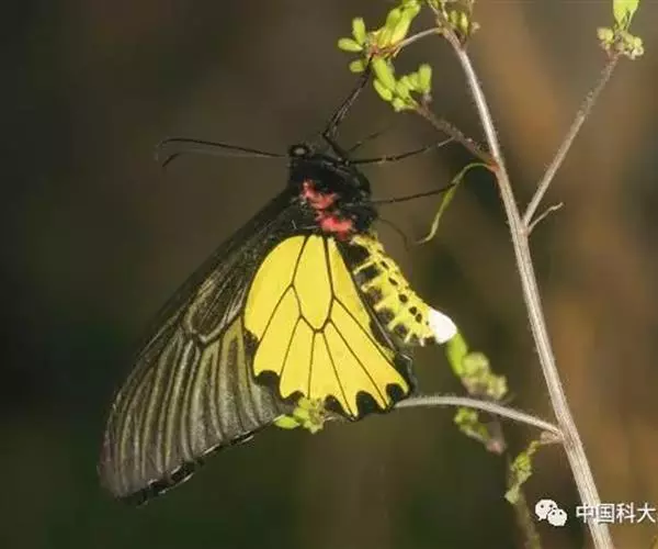 金裳凤蝶在蝴蝶界算是成虫界的“长寿冠军”。普通蝴蝶,一般寿命10-15天,最短的仅活一周,而金裳凤蝶,至少能活一个月以上。