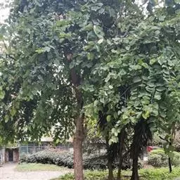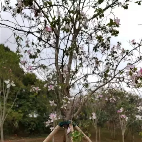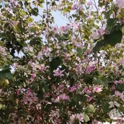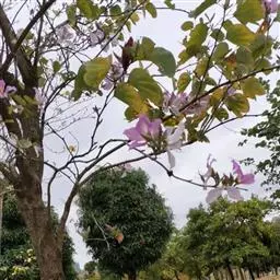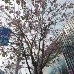 洋紫荆:落叶乔木;树皮暗褐色,近光滑;幼嫩部分常被灰色短柔毛;枝广展,硬而稍呈之字曲折,无毛。叶近…