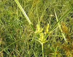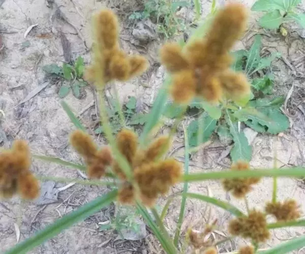 头状穗莎草为草本植物。有须根,叶红棕色,果实为长圆形和三稜形。