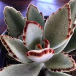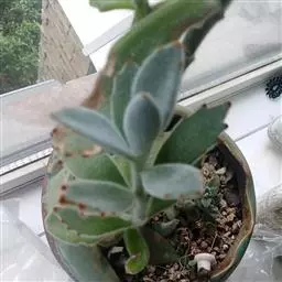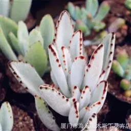 褐斑伽蓝是景天科、伽蓝菜属多年生肉质草本植物或小灌木。全株灰白色,密布白色茸毛。叶片长卵形,…