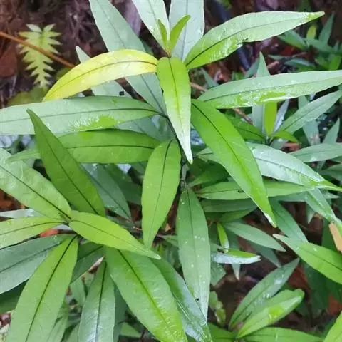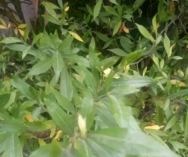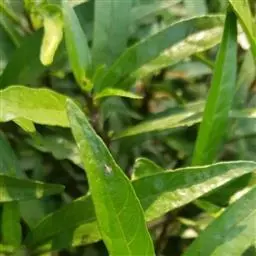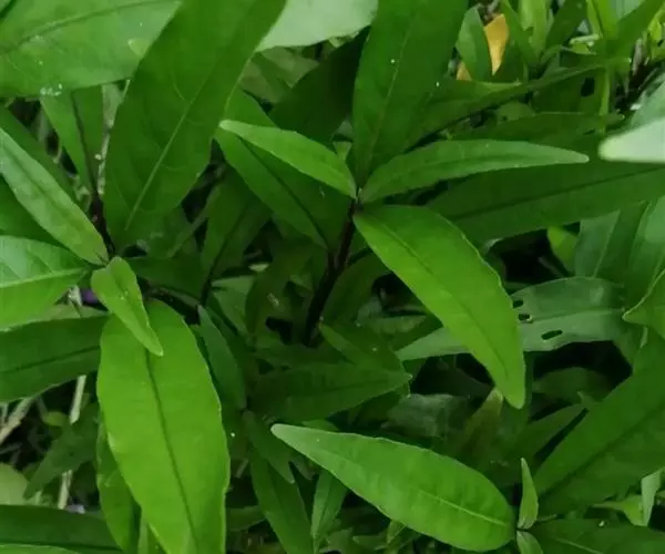 【性状】性状鉴别:茎圆柱形,多分枝,小枝有四棱线,节处膨大,嫩枝绿色。叶多皱缩,完整叶片狭披针形或披针状线形,长4-14cm,宽1-2cm,先端渐尖,基部楔形,全缘,上面青绿色,下面黄绿色,光亮;中脉粗大,与侧脉均呈深紫色,或有时侧脉半透明。气微,味淡。