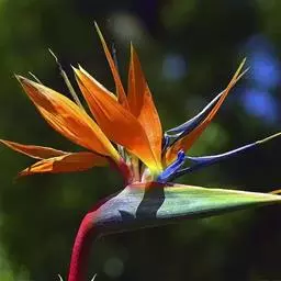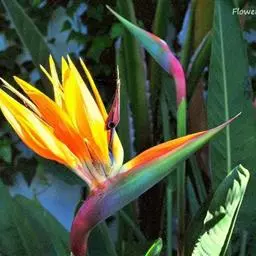 鹤望兰,别名天堂鸟,为鹤望兰科鹤望兰属的一种多年生草本植物;无木质树干;花序生于与叶柄近等长或稍短的花序梗上,佛焰苞1;花较小,萼片橙黄色,长7.5-10厘米,箭头状花瓣基部具耳状裂片,暗蓝色;花期在冬季。该物种原产非洲南部,在中国南方大城市的公园、花圃有栽培,北方则为温室栽培。性喜温暖湿润、阳光充足的气候,适宜生长的温度为25℃左右,耐干旱、较耐寒、不耐水湿,要求疏松肥沃、排水良好,以土层深厚的沙壤土为宜。因花形美丽似鹤,花开时犹如仙鹤翘首远望,花朵寿命亦长,故中文名为鹤望兰。鹤望兰素有“鲜切花之王”的美誉,是一种名贵的观赏花卉,深受广大消费者喜爱。同时,鹤望兰也宜大盆栽植,布置在公园、客厅、会议室、展厅候机室等处。鹤望兰是美国洛杉矶市的官方花卉象征。
