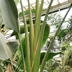 旅人蕉是鹤望兰科旅人蕉属的常绿乔木状多年生草本植物。茎似棕榈;树干直立丛生,圆柱形像棕榈,…
