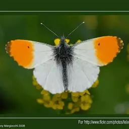 雄性红襟粉蝶的前翅端呈橙色,雌蝶则没有这个特征。雄蝶在春天会在灌木篱墙及湿润草地上寻找雌蝶。它们的…